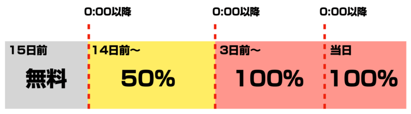 1月17日の0:00以降よりキャンセル料金が発生します。